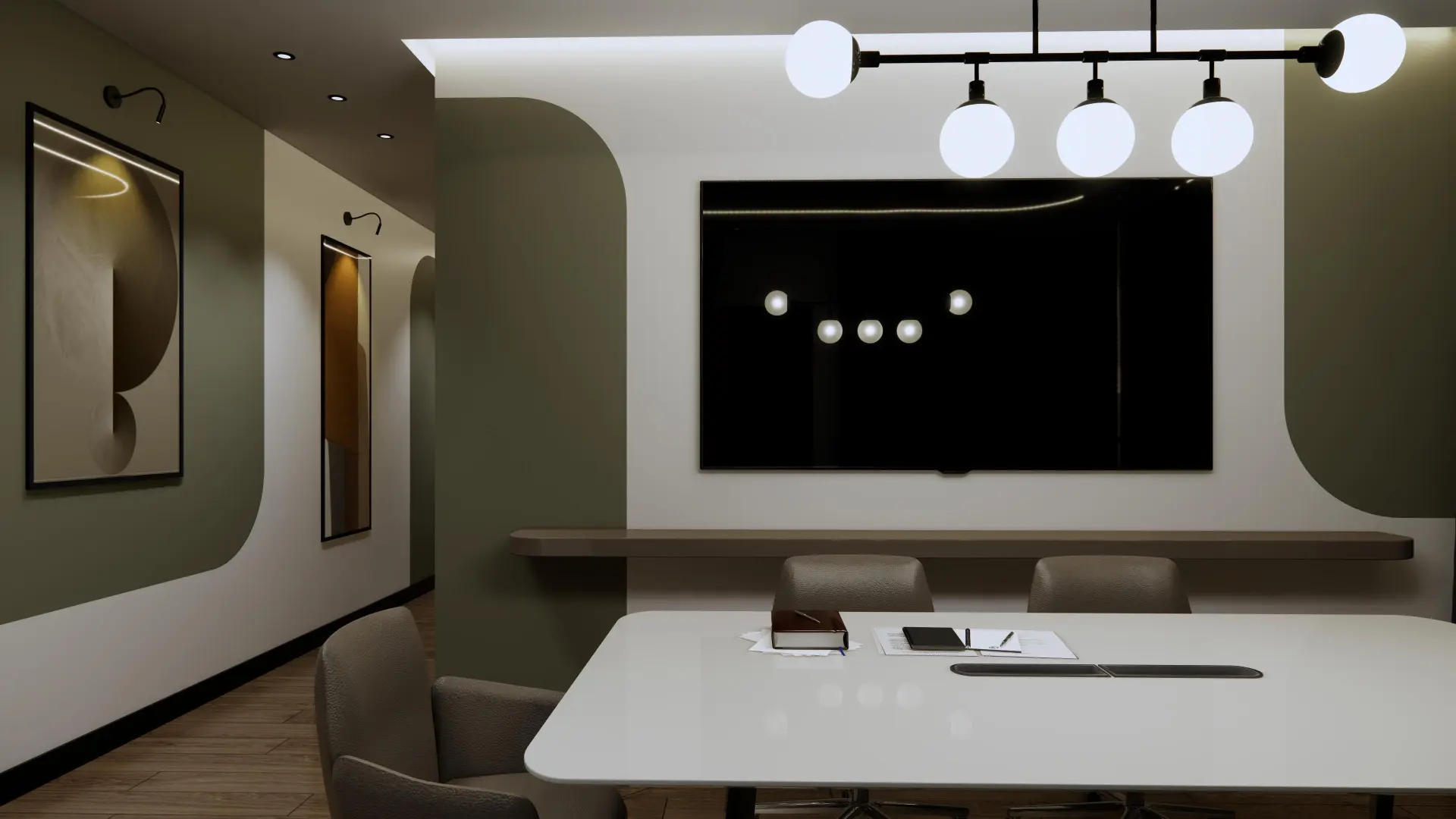 Modern ve profesyonel ofis odaları, son teknoloji sunumlar ve verimli iş görüşmeleri için tam donanımlı.